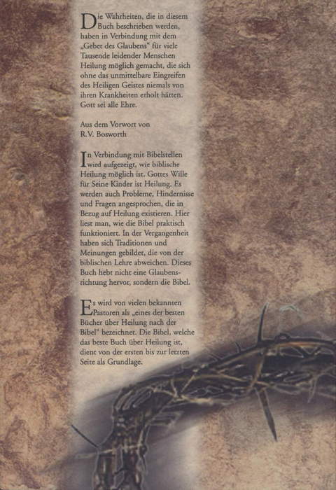 Die Wahrheiten, die in diesem Buch beschrieben werden, haben in Verbindung mit dem" Gebet des Glaubens" für viele Tausende leidender Menschen Heilung möglich gemacht, die sich ohne das unmittelbare Eingreifen des Heiligen Geistes niemals von ihren Krankheiten erholt hätten. Gott sei alle Ehre.